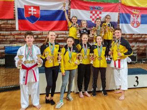 Die Schwestern Elena und Anna Eidler aus Bad Sauerbrunn glänzten erneut. Anna beherrschte ihre Gegnerinnen in der Klasse Kata U18 und zog ohne Punktverlust ins Finale ein. Dort besiegte sie ihre Kontrahentin aus Montenegro mit einem klaren 4:1 Sieg. Im Anschluss erreichte sie als eine der jüngsten Starterinnen in der Allgemeinen Klasse das Finale, wo sie sich nur Kristin Wieninger, der derzeitigen Nummer eins in Österreich, geschlagen geben musste. Schwester Elena holte in der Klasse U14 in einem spannenden Finale nach einem knappen 2:3 den 2. Platz. Der zweifache österreichische Nachwuchsmeister Tobias Stockinger sicherte sich in der Klasse Kata U18 den 3. Platz. Für die Überraschung des Tages sorgte das Küken der Aufbaugruppe Miriam Meissl. Die erst siebenjährige Miriam zog mit drei 5:0 Siegen über ihre internationalen Gegnerinnen ins Finale ein. Erst dort konnte sie von der Bosnierin Tajra Kadic gestoppt werden. Im Kumite sorgten die Nachwuchstalente Tamara Lehner, Leonie Korner und Matthias Prix für weitere Medaillen. Besonders erfreulich war das starke Comeback von Kumitesportler Philipp Holy. Nach wachstumsbedingten Schwierigkeiten und einer kompletten Trainingsumstellung konnte er endlich die Früchte seiner harten Arbeit ernten und seine Klasse zeigen. Er sicherte sich im Bewerb Kumite -55kg den 2. Platz.