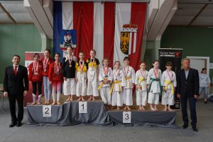 Besonders erfreulich waren die Erfolge der Aufbaugruppe des BLZ. Sophie Strodl, Elena Treun, Sophie Krema und Esther Schneeweiß gehören zu den großen Nachwuchshoffnungen im burgenländischen Karatesport. Seit eineinhalb Jahren nehmen sie am Wettkampftraining teil und durften nun erstmals bei einer größeren Meisterschaft antreten. Im Kata-Teambewerb zogen sie auf Anhieb ins Finale ein und sicherten sich den Sieg. Als Draufgabe konnte Sophie Strodl den Kata-Bewerb in der Klasse „U12“ für sich entscheiden und Sophie Krema belegte Platz 5, genauso wie Esther Schneeweiß in Kata U14.